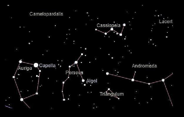 En la constelación le vemos empuñando en la mano la cabeza de Medusa (cómo no). Alrededor de Perseo, se encuentran sus constelaciones mitológicamente asociadas: Casiopea, Andrómeda, Pegaso y Ceto.